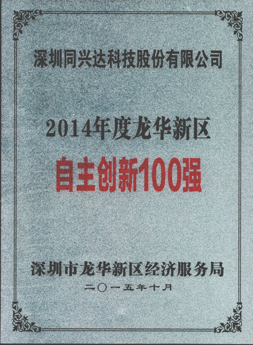 13.2014年度龍華新區(qū)自主創(chuàng)新100強