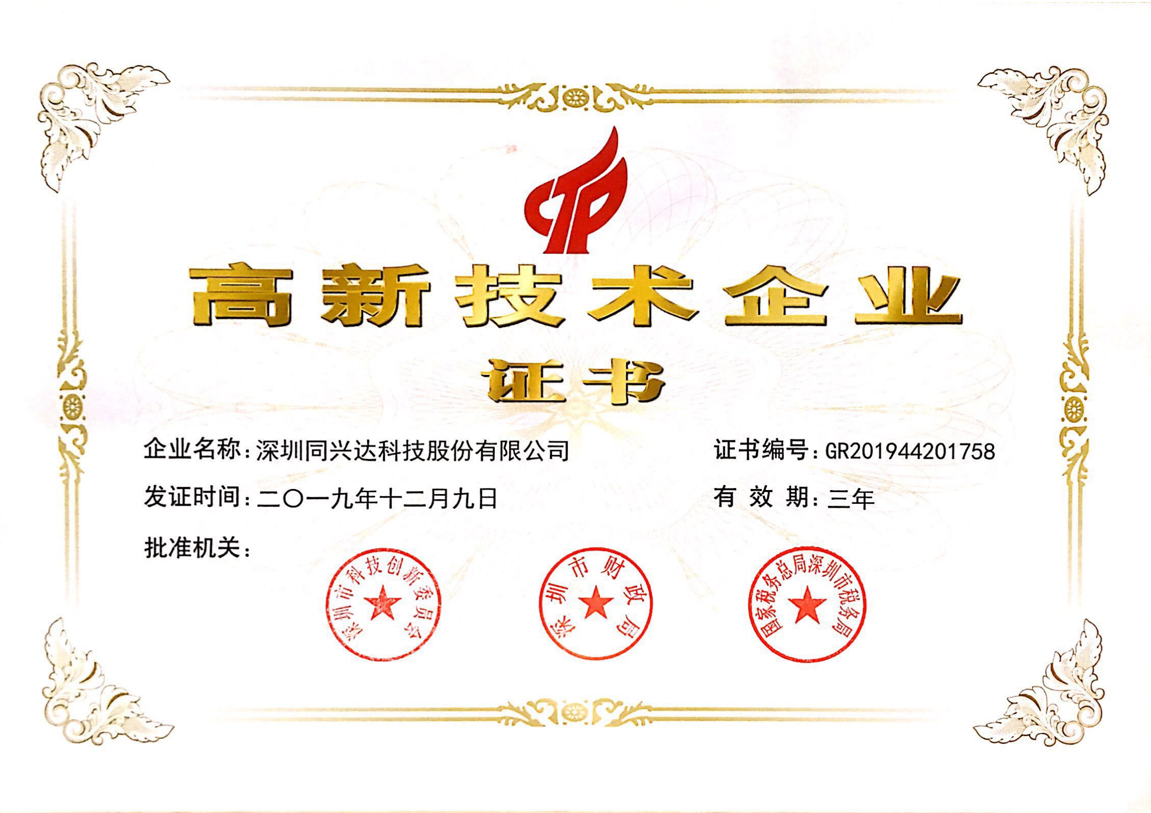 35.深圳同興達科技股份有限公司國家高新技術企業(yè)